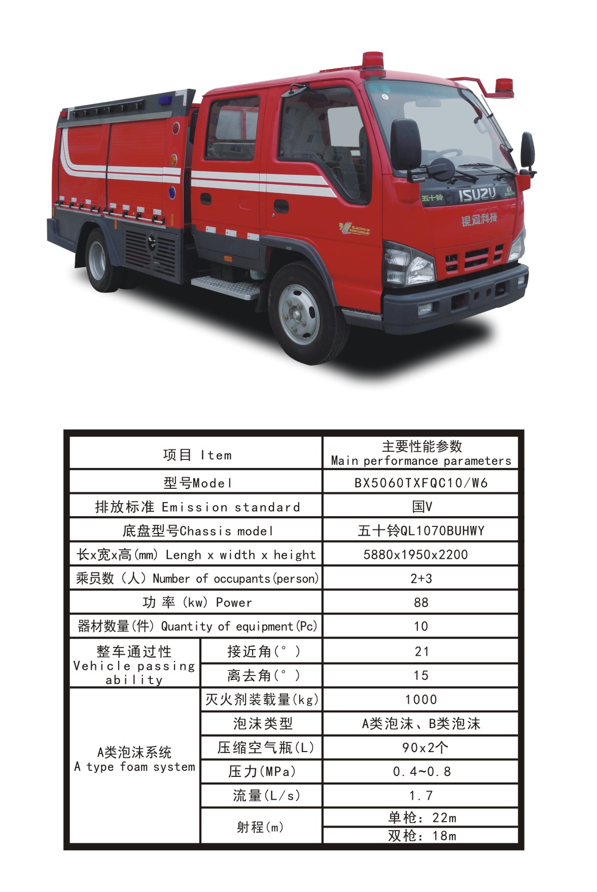 BX5060TXFQC10/W6器材消防車