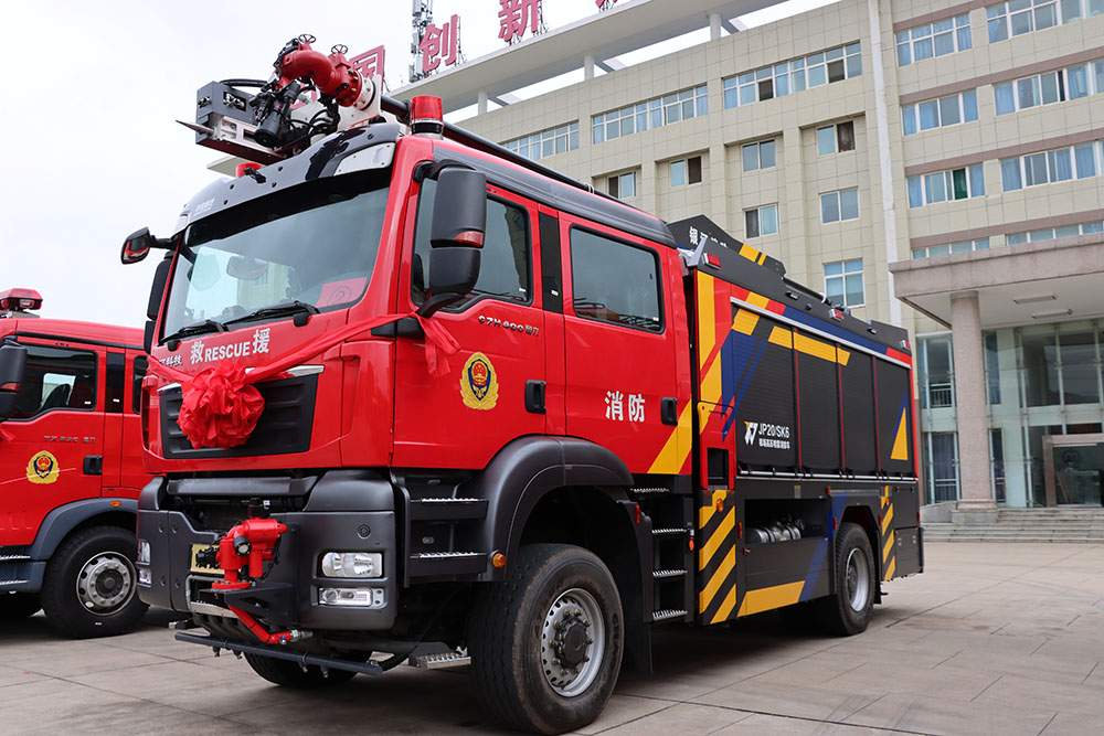 新研發(fā)的履帶排煙消防車(chē)、壓縮空氣泡沫無(wú)人機(jī)多功能消防車(chē)、JY160/HT6搶險(xiǎn)救援消防車(chē)、機(jī)場(chǎng)高壓噴霧快調(diào)消防車(chē)在全體銀河人的熱烈掌聲和燃放的鞭炮場(chǎng)中,有序的發(fā)車(chē)起運(yùn)。